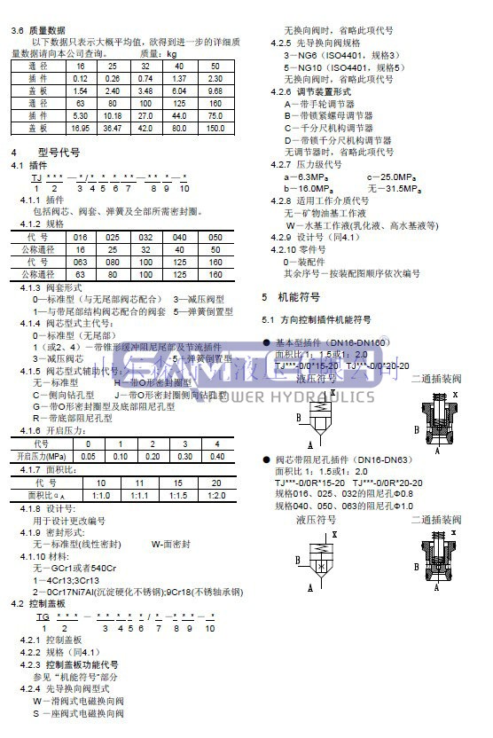 TJ-50上海航儀TJ二通插裝閥邏輯插件方向型TJ-50方向插件美國威格士系